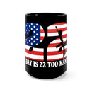 The 22 Too Many: Military Design Black Mug - 15oz is the perfect beverage companion for military personnel and veterans. With its bigger size and durable ceramic construction, this mug ensures you never run out of your favorite hot drink during those moments of relaxation and reflection.