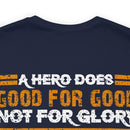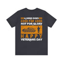 Celebrate the courageous heroes who have served in the military with our "A Hero's Glory: Celebrate Veterans Day with Military Design T-Shirt." This classic unisex jersey short-sleeve tee is designed to fit like a well-loved favorite, ensuring both comfort and style.