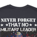 Embrace the audacity of greatness with our "Audacity of Greatness: Military Design T-Shirt Reminding Us of Leadership's Essential Trait." This classic unisex jersey short-sleeve tee is designed to fit like a well-loved favorite, offering unparalleled comfort and style.
