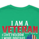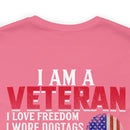 Embrace your veteran pride and make a bold statement with our Veteran Pride T-Shirt. This classic unisex jersey short-sleeve tee is designed to fit like a well-loved favorite, ensuring a comfortable and stylish wearing experience. Crafted from 100% Airlume combed and ringspun cotton, this tee offers a soft and lightweight feel that will make you fall in love with it time and time again.