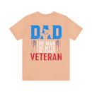 Honor your legendary dad with our Veteran Tribute: DAD - The Man, The Myth, The Legend T-Shirt. This classic unisex jersey short-sleeve tee is designed to fit like a well-loved favorite, providing both comfort and style. Made from 100% Airlume combed and ringspun cotton, this tee offers a soft and lightweight feel that users will fall in love with over and over again. The design is found at the back.