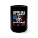 Its design is a nod to the true heroes of our nation, with an impactful quote 'Assuming I Was Just an Old Man Was Your First Mistake.' This distinct phrase pays tribute to the undying vigor and mettle of our brave veterans while serving as a gentle reminder of the profound wisdom that accompanies their valor.